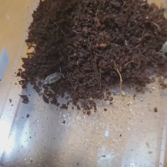 Dairy Cow isopods are chunky, eye-catching isopods with bold black and white spotting – just like their namesake. They are fast-breeding, active, and make a fantastic addition to larger enclosures where they have room to roam.